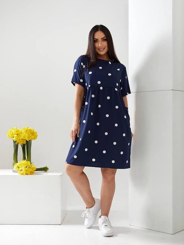 195 Сукня Мод. 1673 Тканина: софт принтований. Кольори: синій, джинс, беж. Розмір: 48-50; 52-54, 56-58; 60-62. Заміри: 48-50 ог 114 см, спинка 93 см, рукав 25 см. 52-54 ог 122 см, спинка 95 см, рцкав 26 см. 56-58 ог 130 см, спинка 97 см, рукав 27 см. 60-62 ог 138 см, спинка 99 см, рукав 28 см.