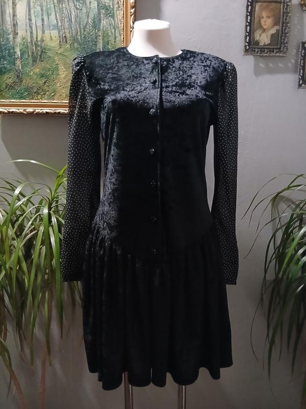 ✨️Вінтажна плюшева велюрова сукня з шифоновими рукавами , розмір S/М ✨️Довжина 92 ✨️Плечі 39 ✨️Рукав 62,5 ✨️Напівоб'єм грудей 46 ✨️Напівоб'єм талії 39 ✨️Стан нової речі #lvnal