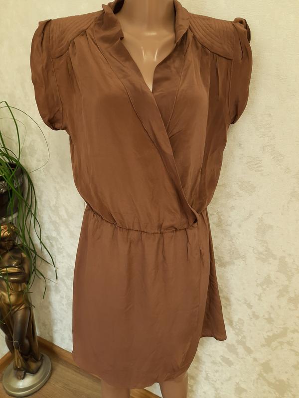 Шелковое платье платье имитация на запах карамель 100% шелк винтаж