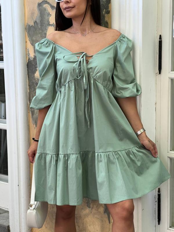 Платье мини лиф присобран на резинке и завязках рукав спущенный фонарик юбка расклешонная...