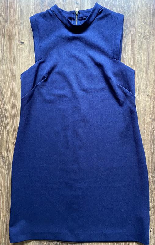 Платье синее New Look, в очень хорошем состоянии, цвет темно-синий с васильковым оттенком. Размер 10/38/М. Замеры: ПО груди - 45 см, ПО талии - 45 см, ПО бёдер - 50 см, ПО низа - 53 см, плечо - 9 см, ширина спинки между плечами - 35 см, длина переда - 86 см. Фасон полуприталенный, очень красивая пройма, застежка сзади на декоративной молнии, ткань фактурная, красивая. Состав: 93% полиамид, 7% эластан, хорошо тянется, но и держит форму, ткань средней плотности. Платьице очень симпатичное, как для мини - не супер короткое, универсальный стиль - под кеды, кроссовки, туфли, почти не мнется и хорошо гладится, ручная или деликатная стирка.