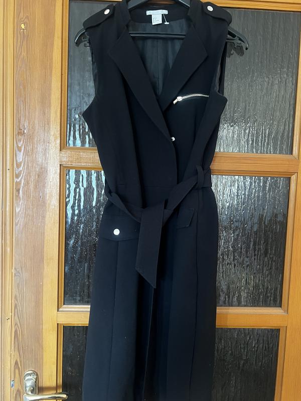 Платье черного цвета, на кнопках, и с поясом Приталений силует