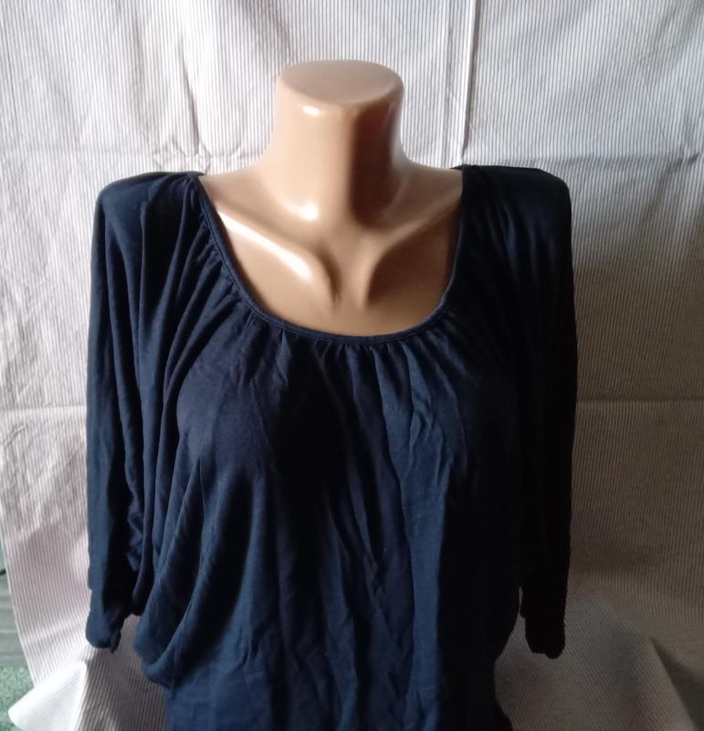 Натуральна,стильна. По горловині кругова збірка. Рукав кажан. Від стегон до низу-пряма. Непомітний виробничій недолік-в ціні враховано. МОДАЛ є різновидом целюлози, яку добувають з бука і евкаліпта. Для додання тканини додаткових особливостей, її можуть створювати з волокон целюлози, а також додавати бавовна, віскозу або еластан. Властивості: • гігроскопічність — тканина вбирає в півтора рази більше вологи, ніж бавовняний матеріал; • проникність — добре пропускає повітря, освіжаючи шкіру; • міцність — тканина не зношується і її досить важко розірвати, бавовна і віскоза поступаються їй у цих показниках; • екологічність — не заряджається статичною електрикою, не викликає алергію навіть у самої чутливої шкіри; • практичність — не линяє і не сідає при пранні, не вигоряє на сонці, добре тримає форму і має низьку сминаемостью, після прання одяг не скочується і виглядає як нова; • легкість — модал має дуже легкі волокна, навіть об’ємний одяг не буде відчуватися на тілі при носінні. Довжина-71