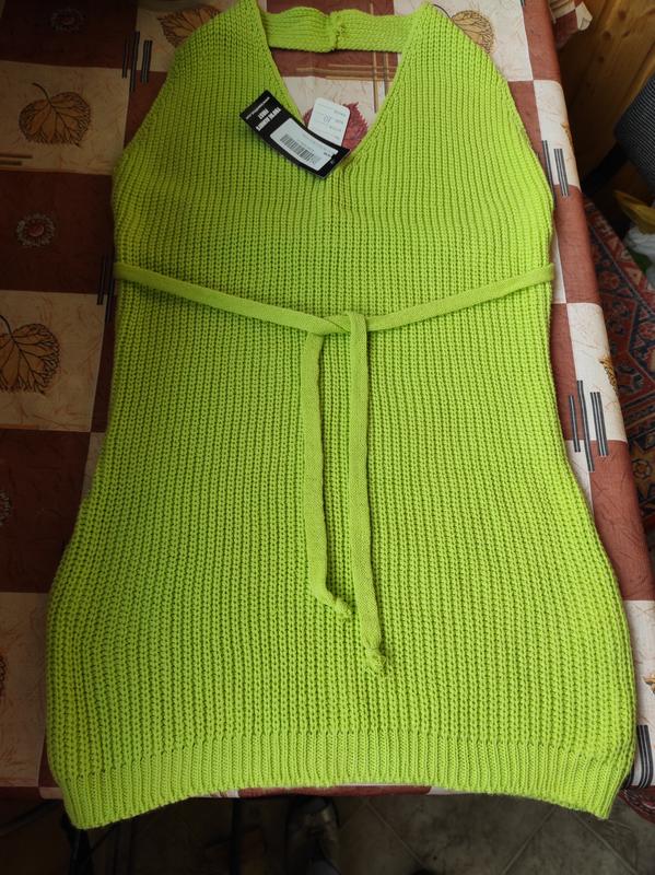 Новое вязаное платье мини трендового салатового цвета. Производитель Британия. Размер указан 38, наш 48. Длина 85-90, ПОГ 45-55, ПИТ 40-50, ПОБОДЫ 47-57, низ 37-55 см, хорошо тянется. Состояние новой вещи с этикеткой!