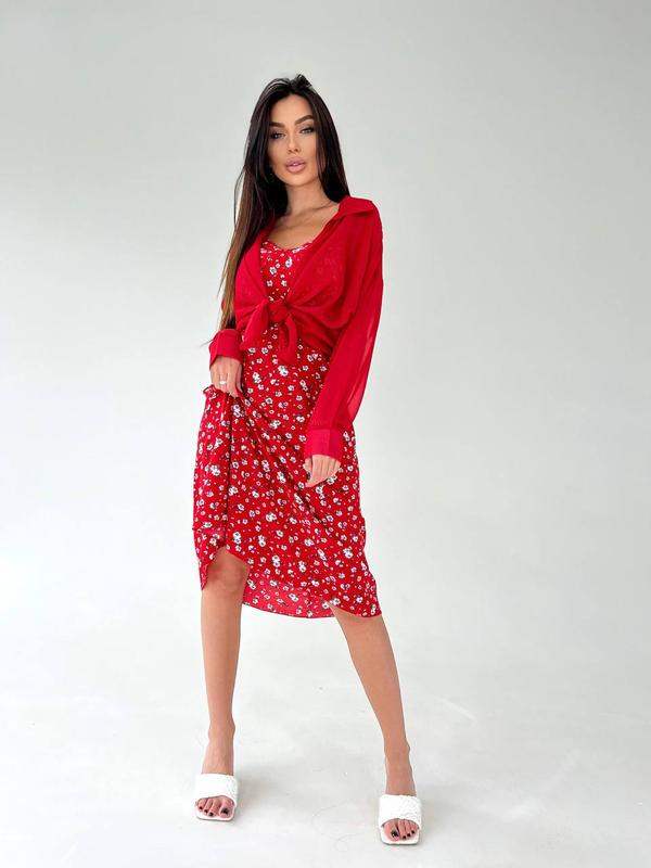 Фото реал 🥰 100% хит продаж 💔 💥Комплект Модель 059 ▫Тканина - софт + шифон ▫Размеры - 42-44 и 44-46 ▫Кольори - як на фото ▫Идеальное тандем на лето - легкое невесомое платье и шифоновая блуза, носите вместе или по отдельности и создавайте невероятно стильные образы ❤ Очень высокое качество🤩