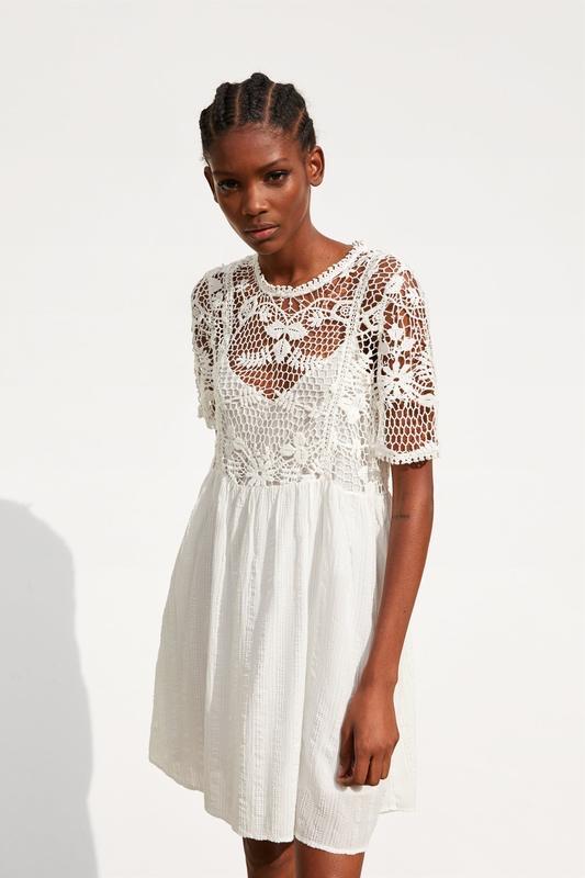 🤍🤍🤍Zara🤍🤍🤍 Платье из легкой воздушной ткани с топом из крючкованой ткани🤍 Цвет белый🤍 Размер указан L но скорее будет на М🤍 Новое с бирочками