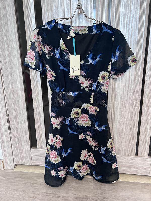 Новое шифоновое платье, размер 6/8(С). Легкая как раз для лета) на спинке завязывается. Замеры: длина 88, под руками 45, талия 34