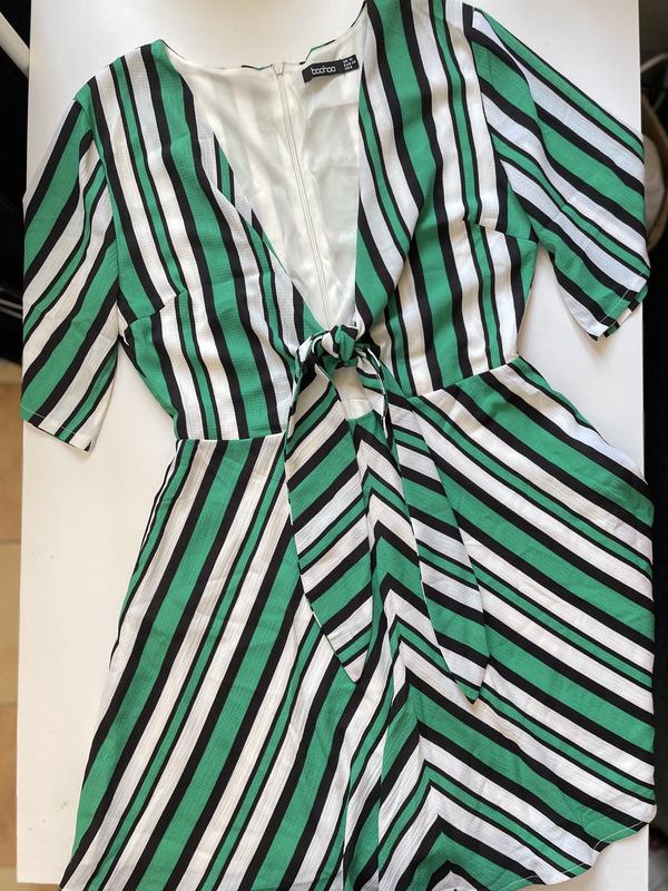 Платье, с завязкой на груди, сзади на замочке, на подкладке не просвечивается, но но без бирки. Бренд: Boohoo Размер: 79110(M) Параметры: В плечах 40 В груди 43 В талии 36 Длина 84 см