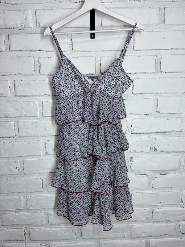 Сукня від therapy. Мила суконька в дрібні квітки в 4 яруси, з підкладою, з боку застібається на замку, брителі регулюються, заміри: довжина від грудей 78 см, ПОГ 38 см, висота чашки 18 см, ширина чашки 25 см. Стан дуже хороший.