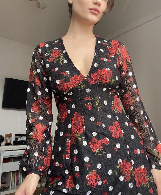 Платье от Зары, с глубоким вырезом. Сверху сетка, по низу есть подкладка