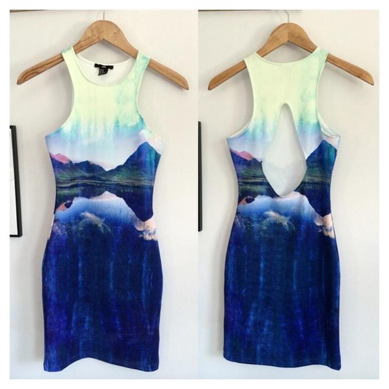 Необычное платье, садится по фигуре. Стан - идеальный. Размер S. Длина по спинке 89, пог 39,5, пот 35. эластичный материал