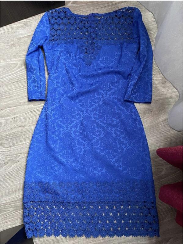 синее платье с ажурными вставками, размер хс/с