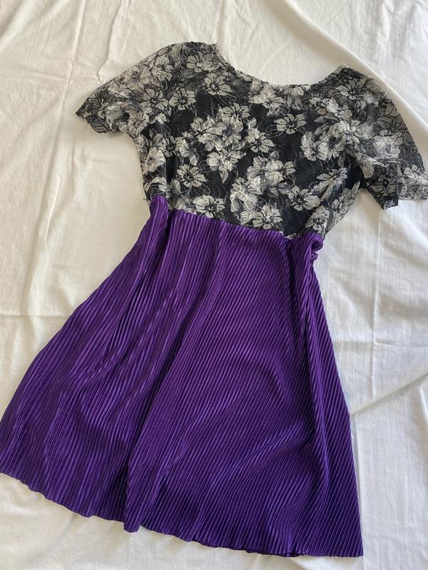 Платье ручной работы. Имеет индивидуальный дизайн, что делает эту вещь уникальной. Верх выполнен из кружевной ткани, а нижняя часть — плиссе. Отсутствуют любые повреждения или дефекты. Если вам нужны замеры (их нет в описании) - пишите 😊