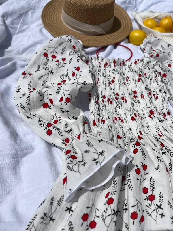 Ніжна та повітряна сукня, в яку ти закохаєшся ▫️Мод:#TR₽E. 0604 ▫️Розміри: SM/ML ▫️Тканина: Жатий Муслін (100% бавовна) ▫️Ціна: 690 грн❣ В цій сукні ти відчуєш себе справжньою принцесою Модель виконана із високоякісного Мусліну У квітковий Принт. Чудово тримає форму, не сковує рухів та дихає Можна носити як з об’ємними рукавами так і зі спущеними плечем.
