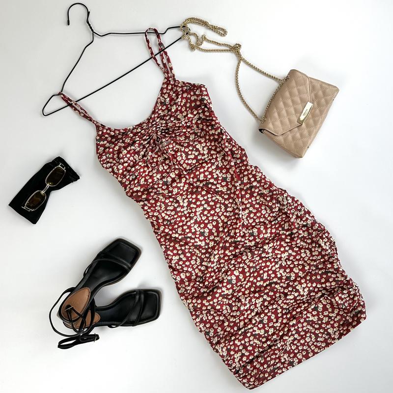 Трендовое платье на завязках от Shein в цветочном принте. Бретели регулируются, длина регулируется завязками. В идеальном состоянии. Размер S Пог 42 см Пот 36 см Поб 45 см Длина 95 см