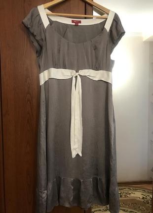 Милое девичье платье из 100% натурального шелка. Цвет тауп, серо-коричневый, очень приятный на ощупь, на подкладке. Красиво садится на 14 размер.