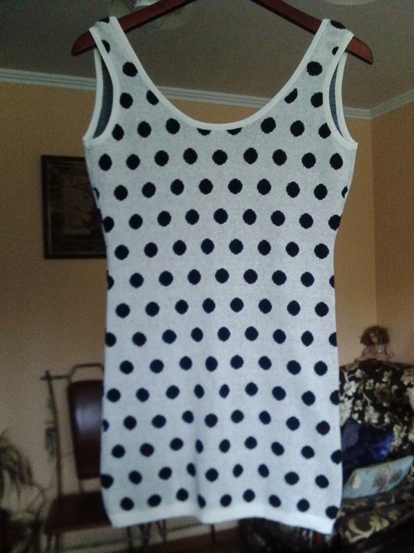 Милое облегающее трикотажное мини платье с открытой спинкой от Air Space.В горошек.Очень хорошо сидит и красиво смотрится!В идеальном состоянии!Внизу на маленьком манжетике. Размер примерно М-Л. Смотрите мерочки!МЕРОЧКИ: длинна по спинке от плечика- 80 см, под мышками - 82 см {хорошо тянется}, бедра - 84 {хорошо тянется}. Вещь качественная и хорошая!