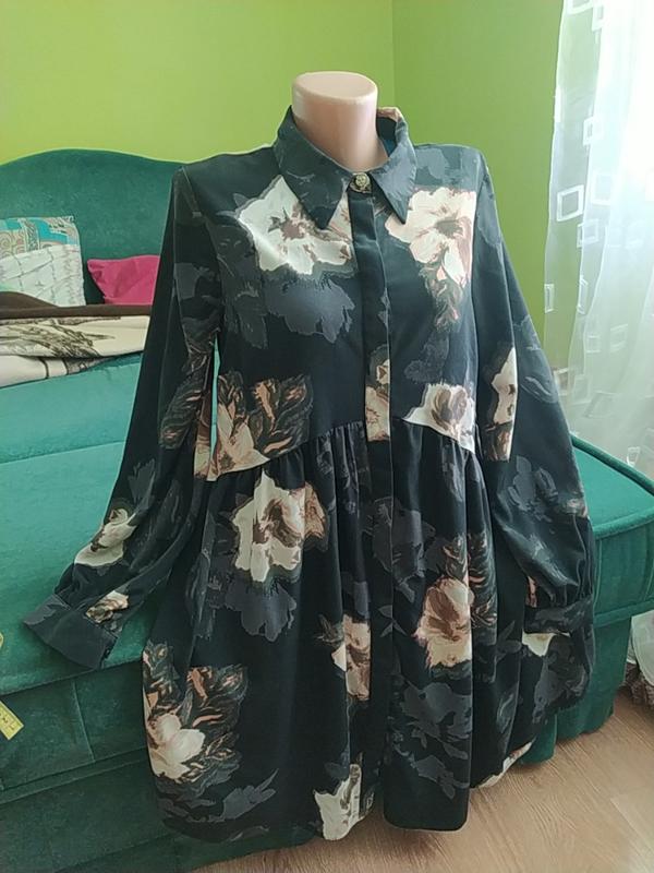 в новом состоянии. фото на мне, 764 наш. прекрасно селено, свободного кроя на потайных пуговицах, с пышными рукавами. по бирке 12 европейский, но, как на меня, маломерит!!!