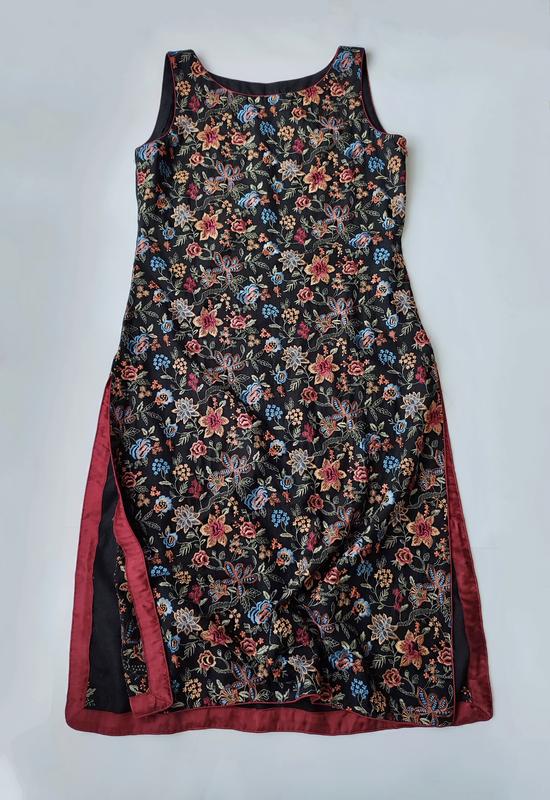 Женское летнее платье в этно стиле с вышивкой цветов. Натуральное, Хлопок - тоненькая легкая приемная к телу. По бокам распорочки украшены красной шелковой атласной лентой с внутренней стороны. Платье приталенное по фигуре. Размер XS, S, по замерам: Длина 97см Пог 42см Пот 38см Поб 46см Длина распырей 45см ( к бедер) Ширина платья снизу 55см Очень оригинальное и красивое! Видимых дефектов нет, состояние идеальное ( возможных где-то микрозацепки нитей цветов,несуточно незаметно вообще) Также просматривайте другие вещи на моей странице много интересного оригинального!