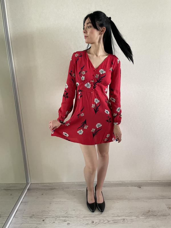 Яскрава сукня червоного кольору в квітковий принт, розмір S, підійде також на XS. Стан чудовий. Тканина муслін, легко прасувати. Збоку прихована блискавка. Спереду ґудзики для краси. Бренд Pimkie (Франція).