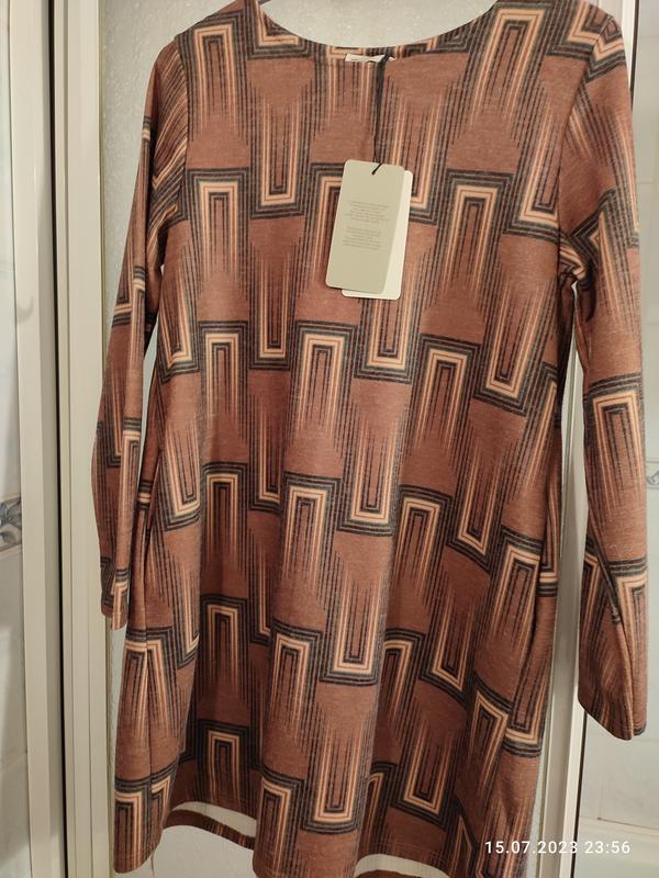 Платье на прохладную погоду, размер М Длина по переду 79см. Длина по спинке 86см. Длина рукава 57см. Ширина под подмышками 50см. Ширина по низу сукні 67см. Ткань мягкая и приятная к телу. Цвет - коричневый.