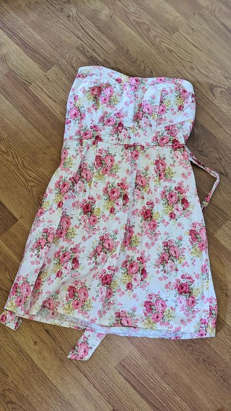 Платье в цветочки, размер S, состояние 4/5 Полная длина: 66 см Полуобхват талии (там где завязки: 34 см, зади резинка, поэтому еще может потянуться. Отдаю по забавной ценной🩷 по деталям пишите в уведомлении.