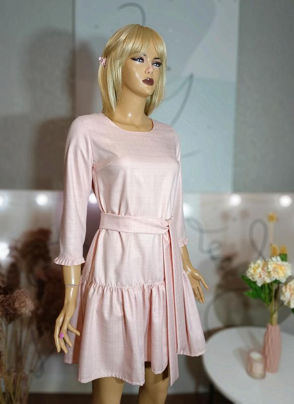 Платье нежно-розового цвета 🌸с люрексом ✨ Нова. Можно носить с поясом, или без. Рукав укороченный. Размер S. 📏 Длина 85 см, плечи 36 см, ПОГ 44-45 см.