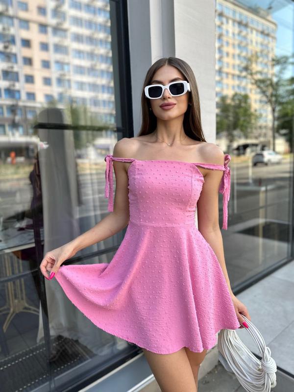Платье на завязочках арт. ryab. 417 Тканина: креп жатка Размеры: 42-44; 44-46 Цвета: барби, голубой, кемэл, черный, молоко, сиреневый