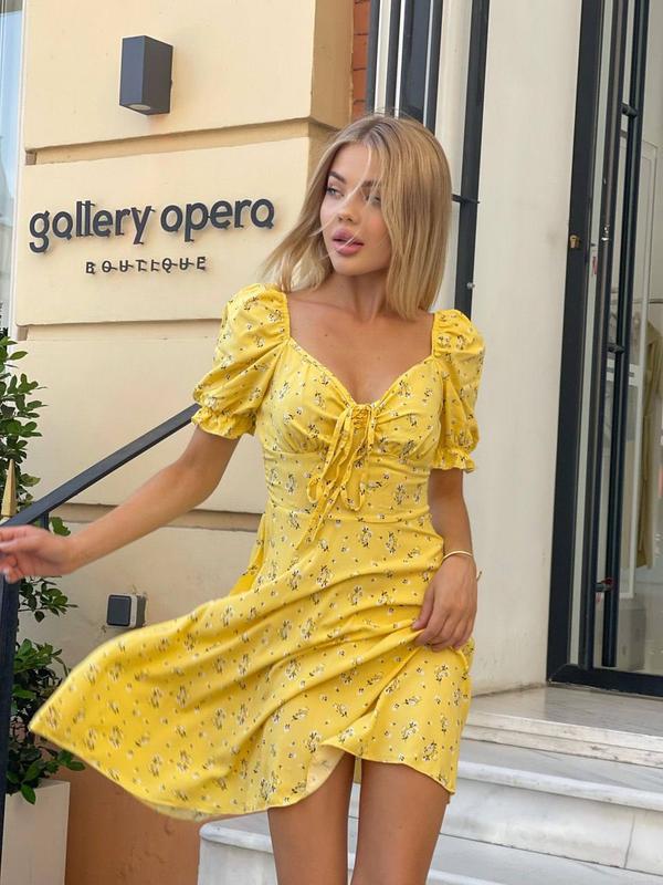 Модель ka 582 Жіноча сукня Розмірний ряд S,M,L,XL Тканина жовтий та чорний штапель, синій софт Сукня застібаєтсья на потайну блискавку , рукава на резиночках Супер якість