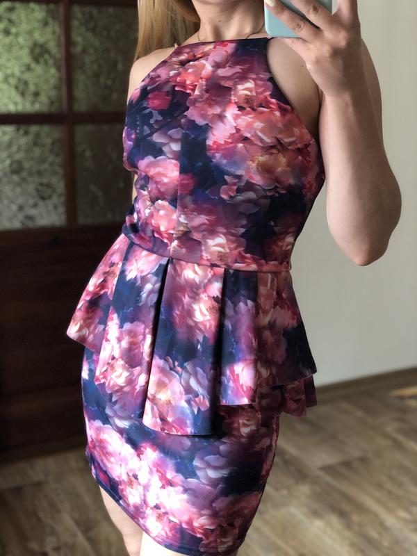 Мини платье с баской в цветочный принт