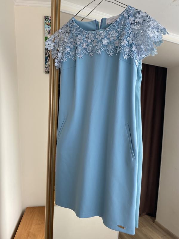 Платье голубого цвета с кружевом Размер М Стан 5/5