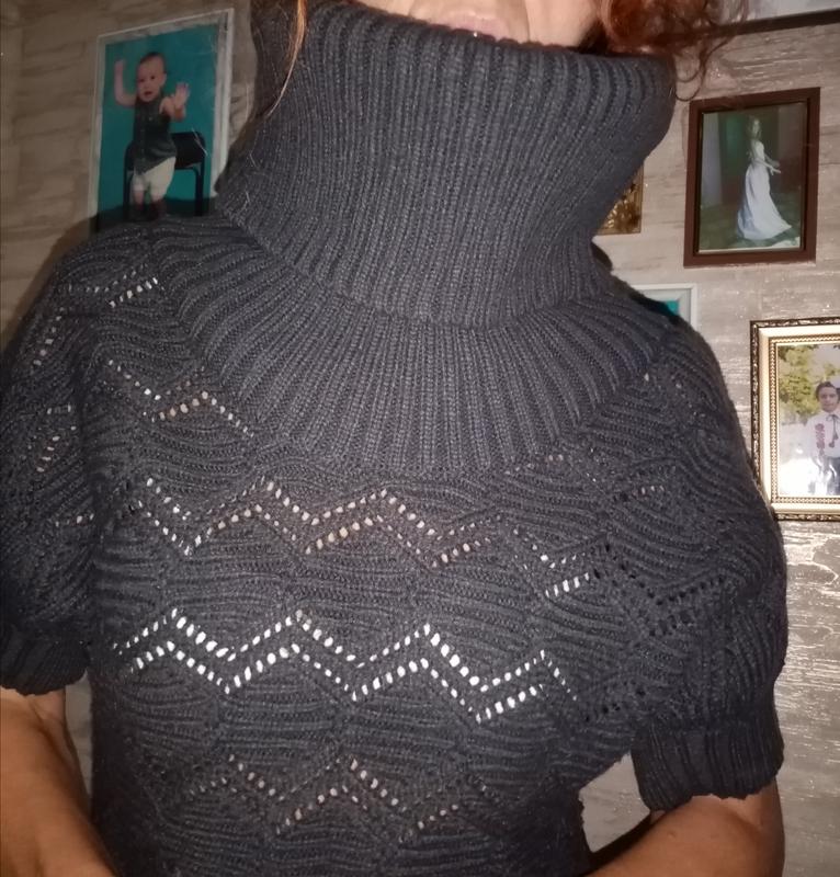 Вязаное платье, в идеальном состоянии, красивый объёмный воротник. Цвет темно - серый.
