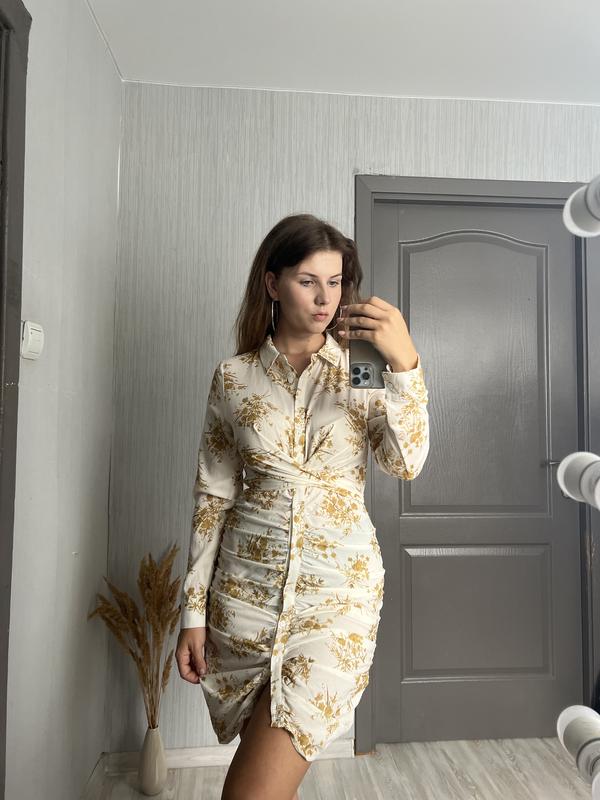 Кремовое платье в цветочек в сборку, новое с биркой, размер 10-м.