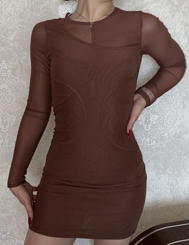 Очень классное платье в сеточку, внутри подкладочка, поэтому не просвечивает, прозрачные только рукавчики и верх спины Она очень классно смотрится на теле, если возьмете, то точно не пожалеете ☺️ Размер XS, подойдет и на небольшую S Бренд Jennyfer, абсолютно новое, бирочка отлетела Если нужны замеры и фото на теле, убедитесь в личные, все отправлю 💫