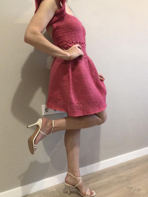 Ручная работа, платье с красивой открытой спинкой. Идеально сядет на М размер, но за счет завязок на спине, можно на Л