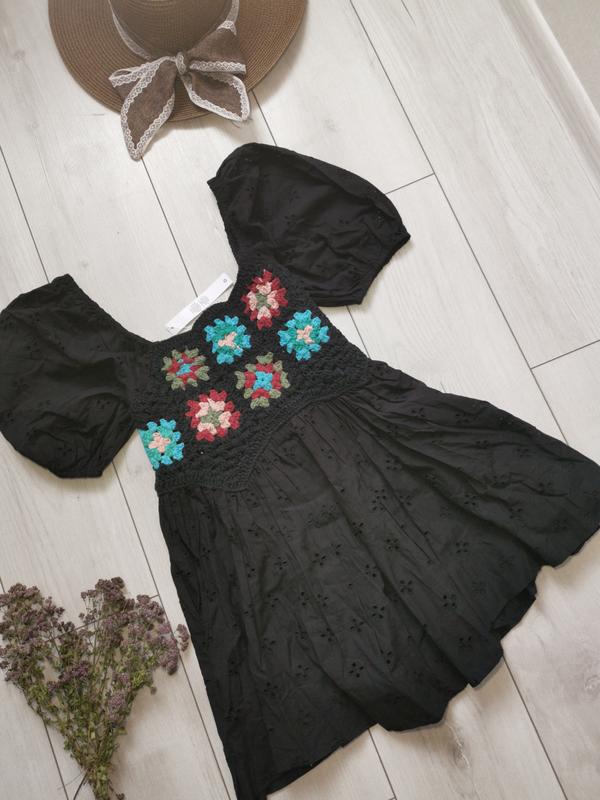 Платье женское короткое в черном цвете с вложенными цветами Размер s-m Не на високу