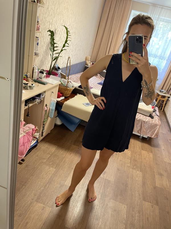 Сарафан в идеальном состоянии, размер s-m Короткий, очень приятная ткань Темно-синий цвет