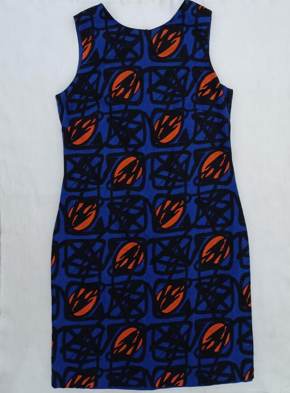 интересное льняное платье от peacocks. ровный фасон, абстрактный принт, есть подклад, сзади снизу маленький разрез