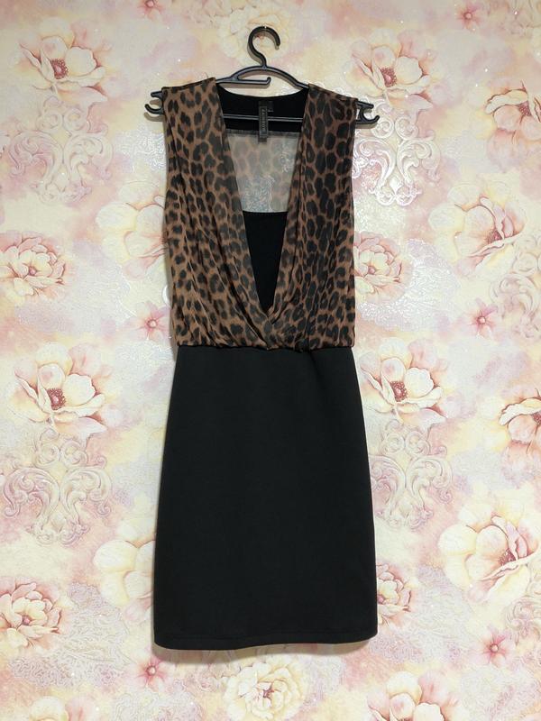 Размер указан 32/34. Подойдет на размер XS. Низ черная юбка облегающая, а верх сеточка леопардового принта, только спереди на груди топ черный. Грудь не светится.