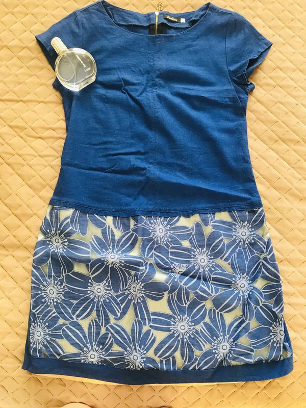 Льняное летнее платье для девочек с интересом вставками