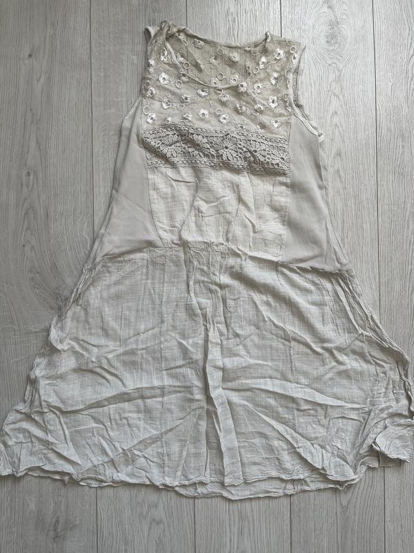 Плаття Італія, розмір М, із вставками з трикотажу і кружева, стан ідеальний, колір світло бежевий, довжина до колін