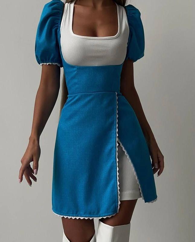 Платье двойка есть наложка с предоплатой ✅ ▪️Артикул: R851/755 ▪️Размир: 42-44, 44-46 ▪️Тканина: рубчик льон ▪️Цвет: голубой/белый