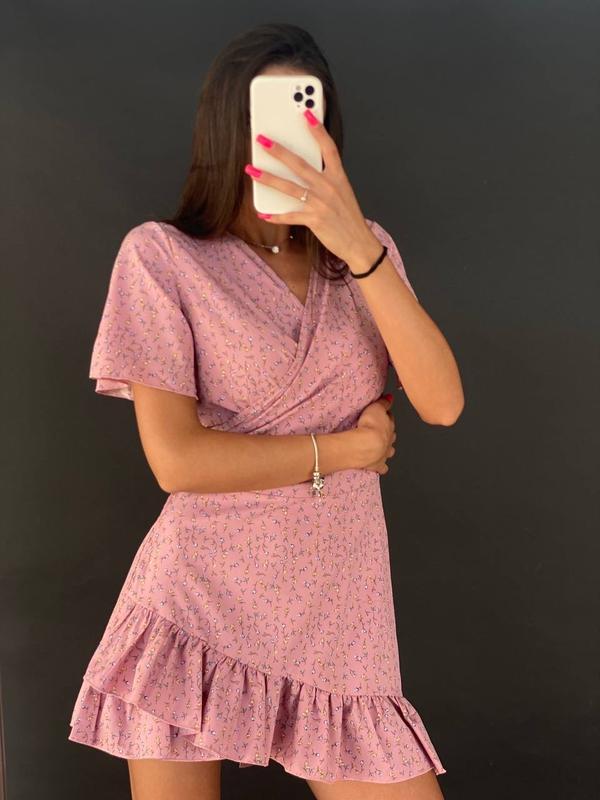 Арт 1526/1-2311 🔺Сукня Цена : 520 ткань : софт цветы цвет: черный, розовый размер: 42-46 (one size) Легкое цветочное платье на запах🥰 Качество👍🏻 Параметры: ОГ: 85-95 см Длина: 84 см