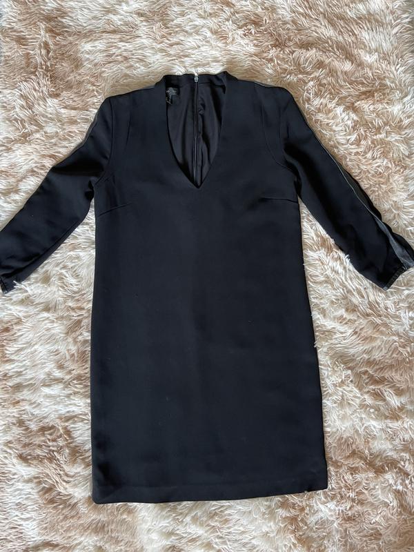 Платье на длинный рукав с эко кожи полосками на рукавах. Имеет подкладку. Длина 84 см. Размер S