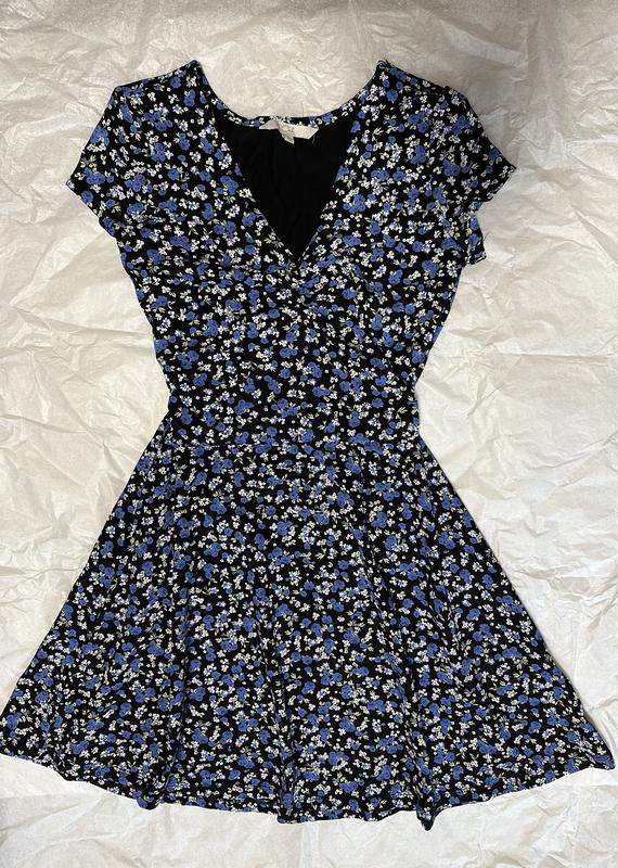 Веселое платье в красивые цветочки от фирмы Clockhouse. Красивый фасон - подчеркивает талию, к низу идет клеш. Ткань трикотаж, хорошо тянется. Состояние -новое, без бирки. Размер - С-Хс (36-34).