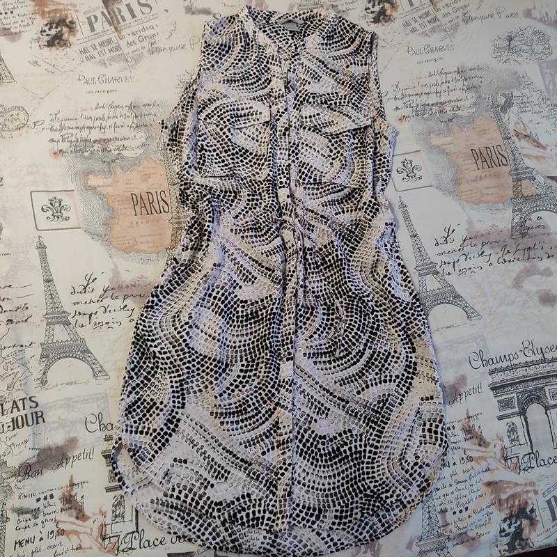 Платье H&M,размер 6/36, болеемерит,йдет на размер М(8/38).На талии затягивается шнурочком, застежка на пуговках, сзади удлиненное чуточку.