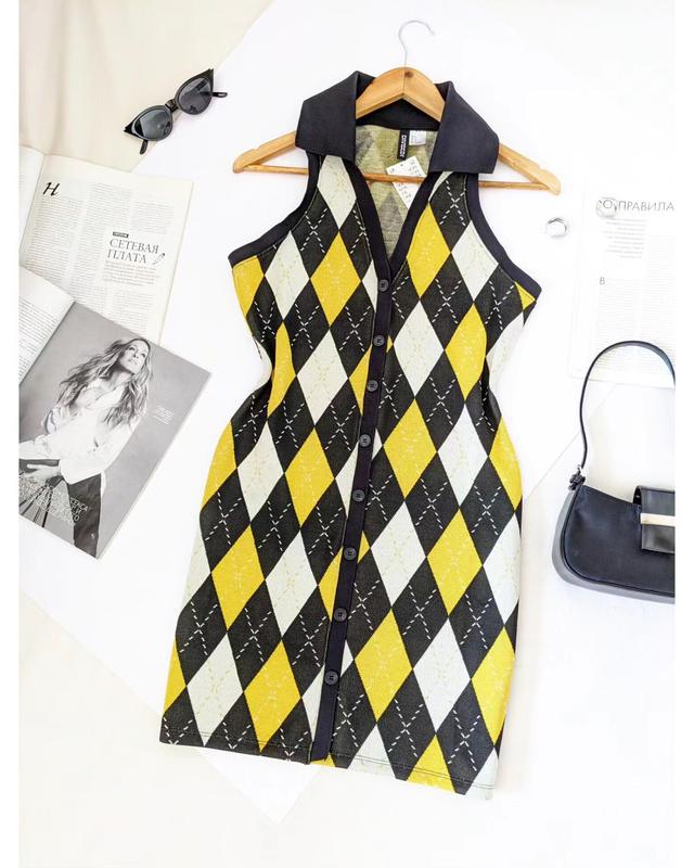Стильное трикотажное платье/платье/платье 💛🖤 с воротничком, на пуговицах h&m, на р....