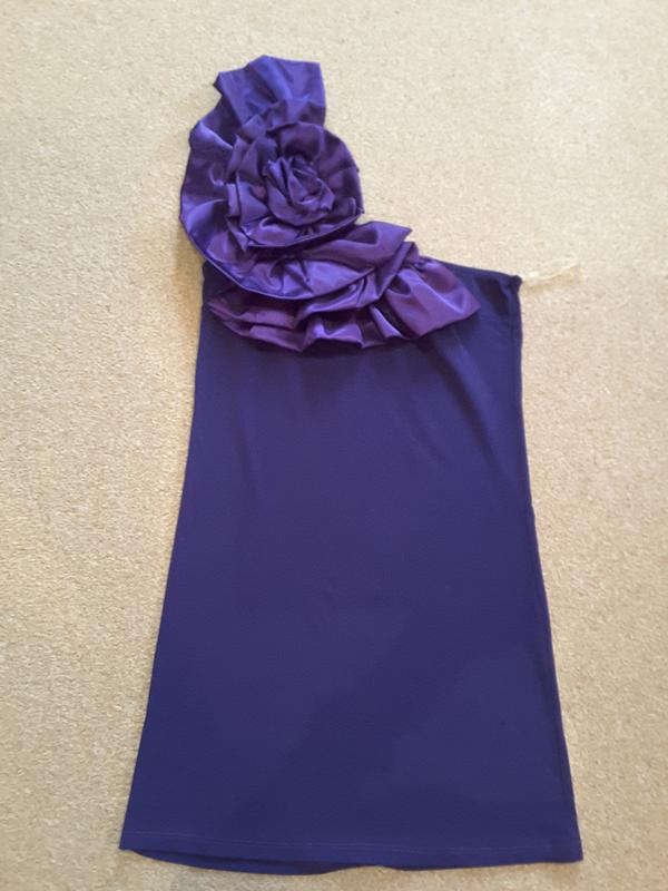 Украшена большим красивым цветком,на одно плечо. Прекрасно подойдет для любого праздника.
