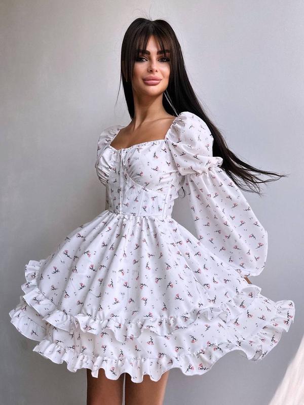 👆Лялькова сукня з пишною спідницею та корсетним верхом з ніжним квітковим принтом Тканина - софт Розміри : S, М Країна виробник Україна🇺🇦