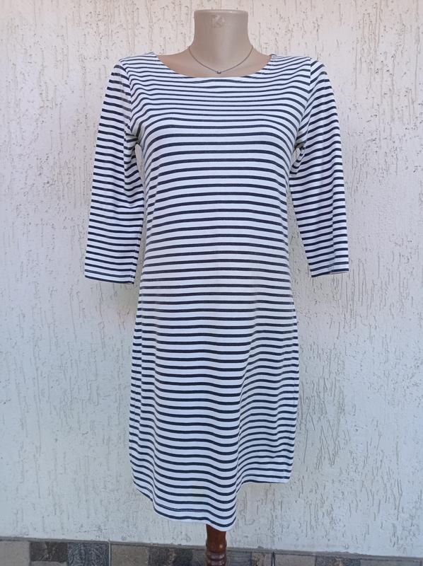 Котоновое платье в полоску на молнии в красивом состоянии. Длина 83, ПОГ 42, рукав 41, плечи 36, ПОБ 42.